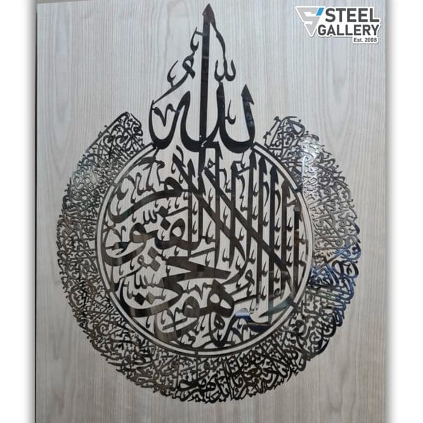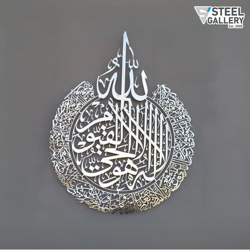 Ayatul Kursi Islamic Wall Art, যা বানানো হয়েছে ১০০% স্টেইনলেস স্টিল দিয়ে।