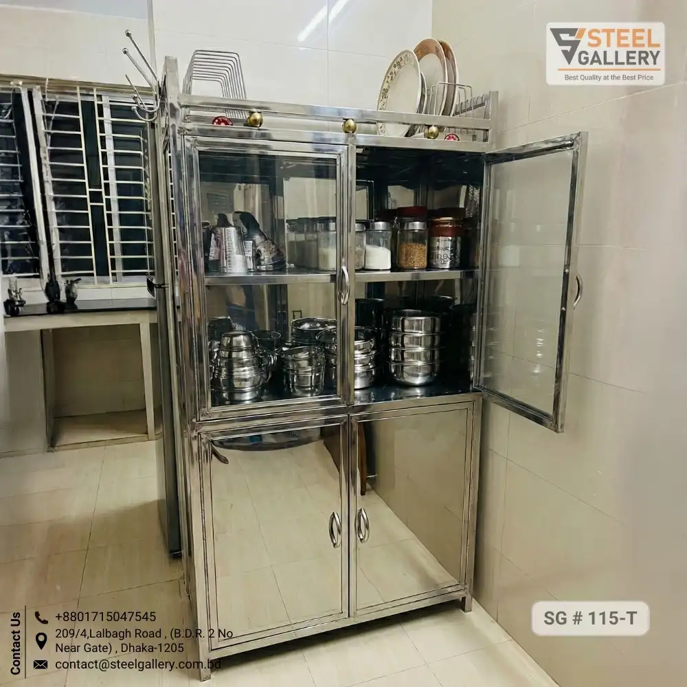 সিম্পল ডিজাইনের মধ্যে প্রিমিয়াম কিছু খুঁজছেন? SG #107-T মডেলটি ঠিক আপনার জন্য। স্টেইনলেস স্টিলের তৈরি এই  Kitchen Cabinet / খানাডুলি মরিচা-মুক্ত, টিকটিকি-প্রতিরোধী এবং সহজে পরিষ্কারযোগ্য – পারফেক্ট আপনার ব্যস্ত জীবনের জন্য।